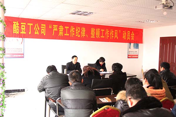2月23日,安徽酷豆丁兒童用品有限公司召開“黨的群眾路線教育實(shí)踐活動(dòng)”及專項(xiàng)治理動(dòng)員會(huì)。班組長以上管理人員、各部門工作人員共70余人參加會(huì)議。董事長張迎年和副總經(jīng)理們出席會(huì)議。