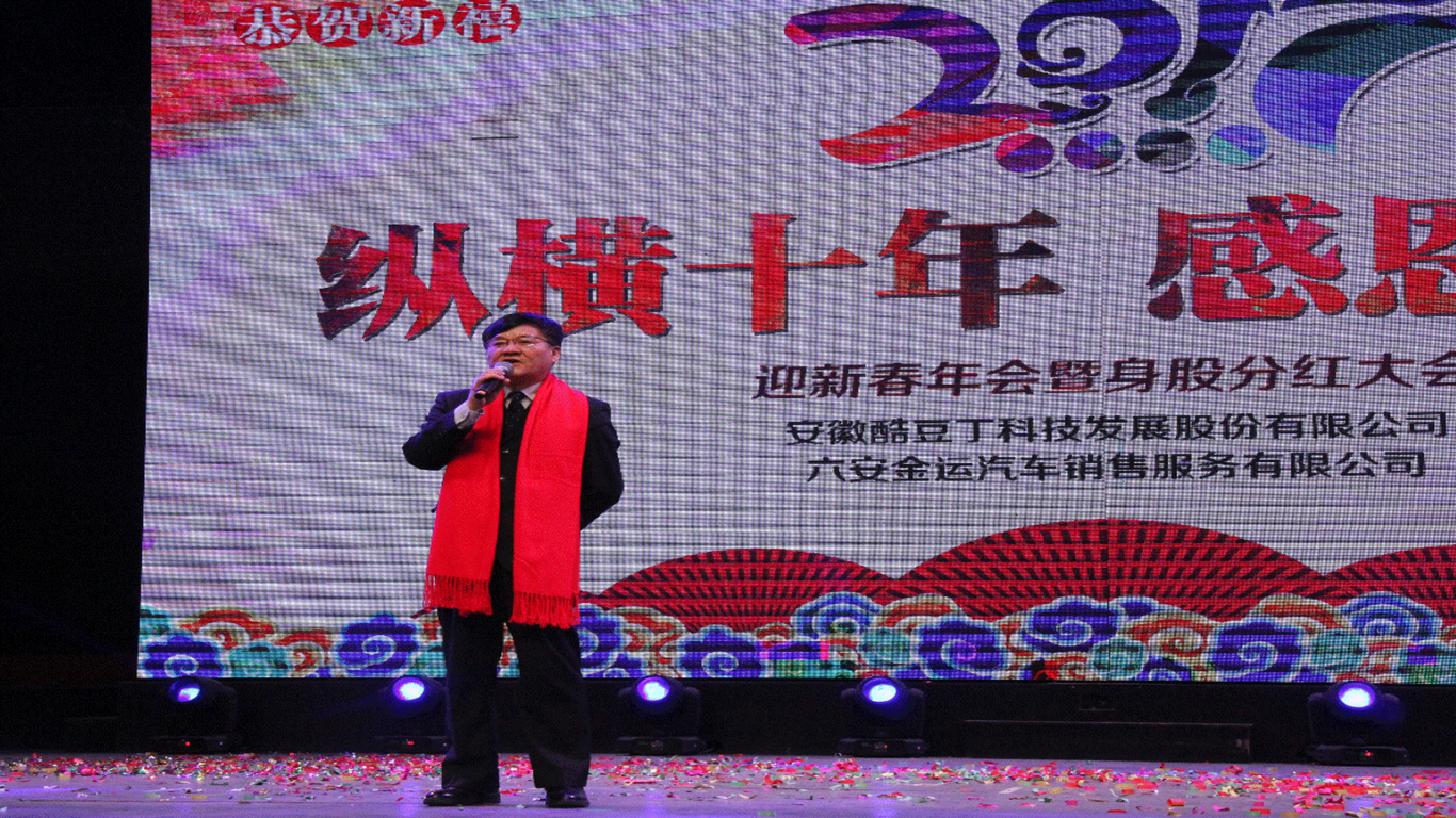 2017年1月18日,安徽酷豆丁迎新春年會(huì)暨身股分紅大會(huì)在悠然南溪9號(hào)大劇院隆重召開(kāi), 金安區(qū)人民政府副區(qū)長(zhǎng)王務(wù)兵、金安區(qū)慈善協(xié)會(huì)會(huì)長(zhǎng)彭良國(guó)、金安區(qū)商務(wù)局局長(zhǎng)金宗武、 慧聰書(shū)院首席法律顧問(wèn)馮仲實(shí) 、孫云領(lǐng)、酷豆丁的董事長(zhǎng)張迎年、副總經(jīng)理張磊、副總經(jīng)理韓兵以及酷豆丁的全體員工800余齊聚一堂,共襄酷豆丁年度盛會(huì)。