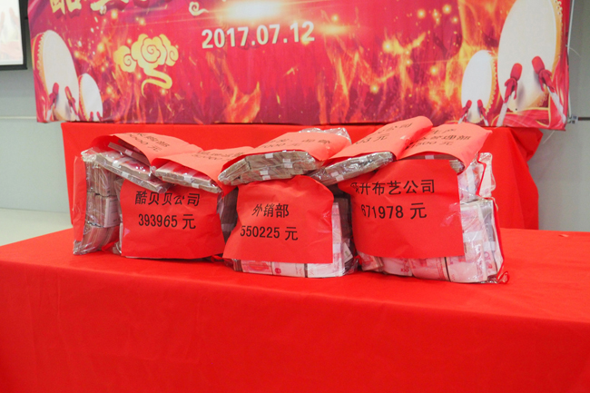 展示現(xiàn)金時,現(xiàn)場參會人員爆發(fā)出熱烈掌聲。這掌聲是酷豆丁員工對“耕者有其田,商者有其股”制度的贊賞,這掌聲是酷豆丁人對“股改天下”發(fā)展模式的尊崇,這掌聲是對酷豆丁董事長寬大胸懷的敬仰和由忠的佩服。2017年酷豆丁人通過這半年的努力,為自己獲取了更多分紅實惠,同時也提高企業(yè)整體效益。