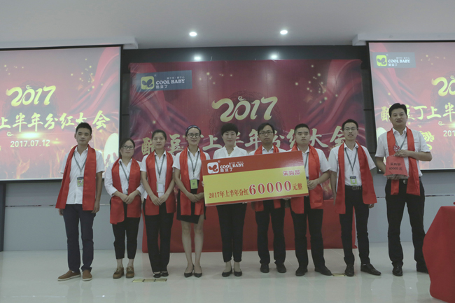 酷貝貝兒童用品有限公司領取分紅現(xiàn)金并與酷豆丁董事長合影留念