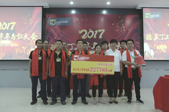 傳世五金有限公司領取分紅現(xiàn)金并與酷豆丁董事長合影留念