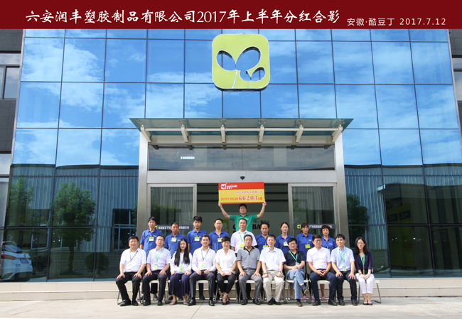 潤豐塑膠有限公司領取分紅現(xiàn)金并與酷豆丁董事長合影留念