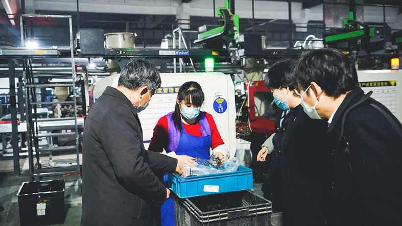 王勝一行首先參觀了企業(yè)的生產(chǎn)車間,工人們正在各自崗位忙碌著,王勝不時(shí)停下來查看工人生產(chǎn)的酷豆丁童車童床產(chǎn)品零配件及相關(guān)的產(chǎn)品,與工人親切交談并詢問工人的家庭情況及疫情下家里人的健康情況和防護(hù)的措施。