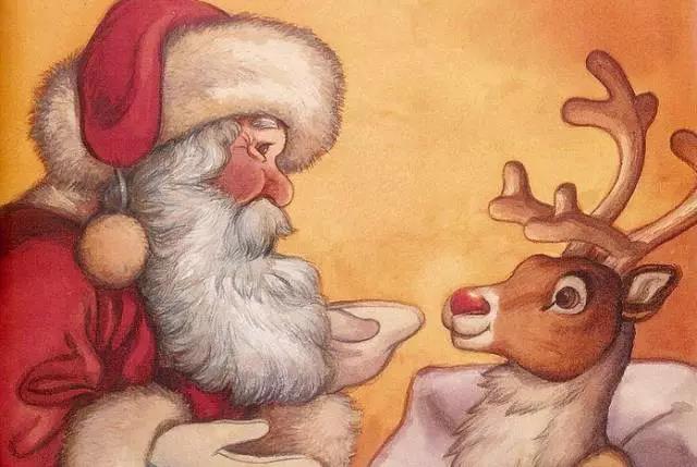 圣誕老人坐的雪橇,就是用馴鹿(Reindeer)來拉的,領(lǐng)頭的圣誕馴鹿名字叫魯?shù)婪颍≧udolph),有個(gè)紅鼻子。