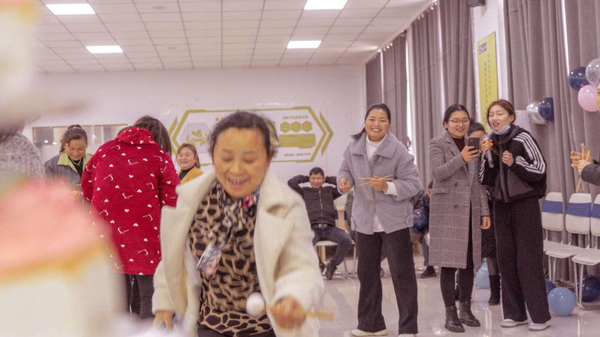 活動(dòng)不僅有豐盛的生日蛋糕,還穿插游戲環(huán)節(jié),大家參與游戲比賽,為團(tuán)隊(duì)爭(zhēng)第一,特別是用筷子左手夾起乒乓球接力賽,有的輕巧靈活、有的稍顯笨拙,友誼第一,比賽第二,個(gè)個(gè)都努力奔跑,歡聲笑語(yǔ),讓他們?cè)谟螒虮荣愔懈惺芗w生日幸福感。