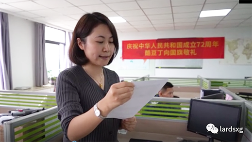 “向國旗敬禮”儀式在酷豆丁外貿(mào)部舉行,科技公司十幾個部門近200名員工在各自工作崗位上通過網(wǎng)絡(luò)“向國旗敬禮”。