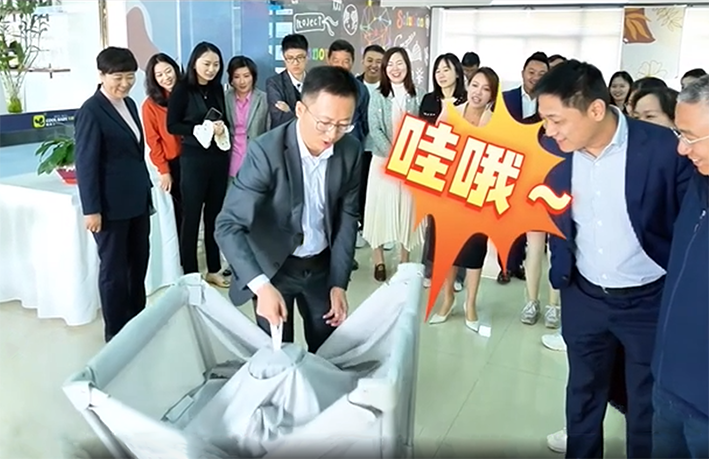 參訪伊始,酷豆丁創(chuàng)始人、董事長張迎年女士陪同上海國家會計學(xué)院(SNAI)一行參觀了酷豆丁生產(chǎn)線與公司展廳,并為大家介紹了公司和所處行業(yè),詳細(xì)講解了公司產(chǎn)品的應(yīng)用場景、競爭優(yōu)勢、在研項(xiàng)目和發(fā)展戰(zhàn)略以及公司作為嬰兒床出口龍頭企業(yè)在外貿(mào)出口與打造中國自主品牌方面所做的努力。其中酷豆丁嬰兒床“一鍵開合”獨(dú)家專利引發(fā)了參訪者的濃厚興趣,大家紛紛發(fā)問并上手操作感受黑科技的魅力。