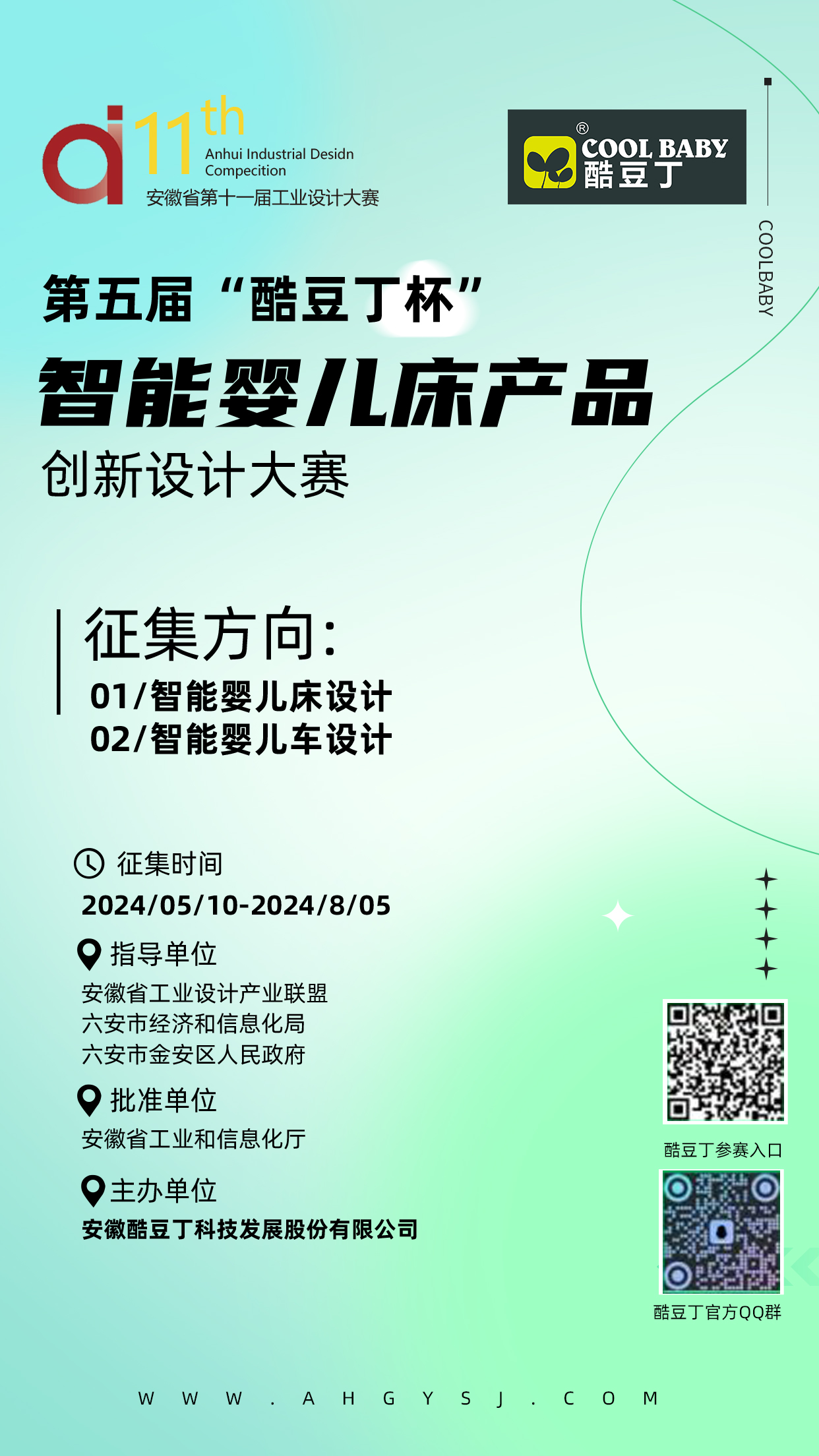第五屆“酷豆丁杯”智能嬰兒產(chǎn)品創(chuàng)新設計大賽是經(jīng)安徽省工業(yè)和信息化廳批準,在安徽省第十一屆工業(yè)設計大賽組委會(以下簡稱省賽組委會)指導、監(jiān)督下,由安徽酷豆丁科技發(fā)展股份有限公司主辦。該賽事是安徽省第十一屆工業(yè)設計大賽的有機組成部分,并組織參加省賽組委會相關活動。大賽在前四屆成功主辦的基礎上,將聚焦智能應用新技術(shù)、新場景和新體驗,發(fā)掘具有創(chuàng)新價值和市場潛力的智能嬰兒產(chǎn)品設計方案。參賽者需結(jié)合市場趨勢、客戶畫像以及智能技術(shù)發(fā)展,設計出既實用又具備高科技感的時尚智能嬰兒車、嬰兒床產(chǎn)品。參賽作品應體現(xiàn)創(chuàng)新價值元素,可以是智能服務、功能結(jié)構(gòu)、未來場景等方面的理念或應用創(chuàng)新,以提升用戶體驗和市場競爭力。