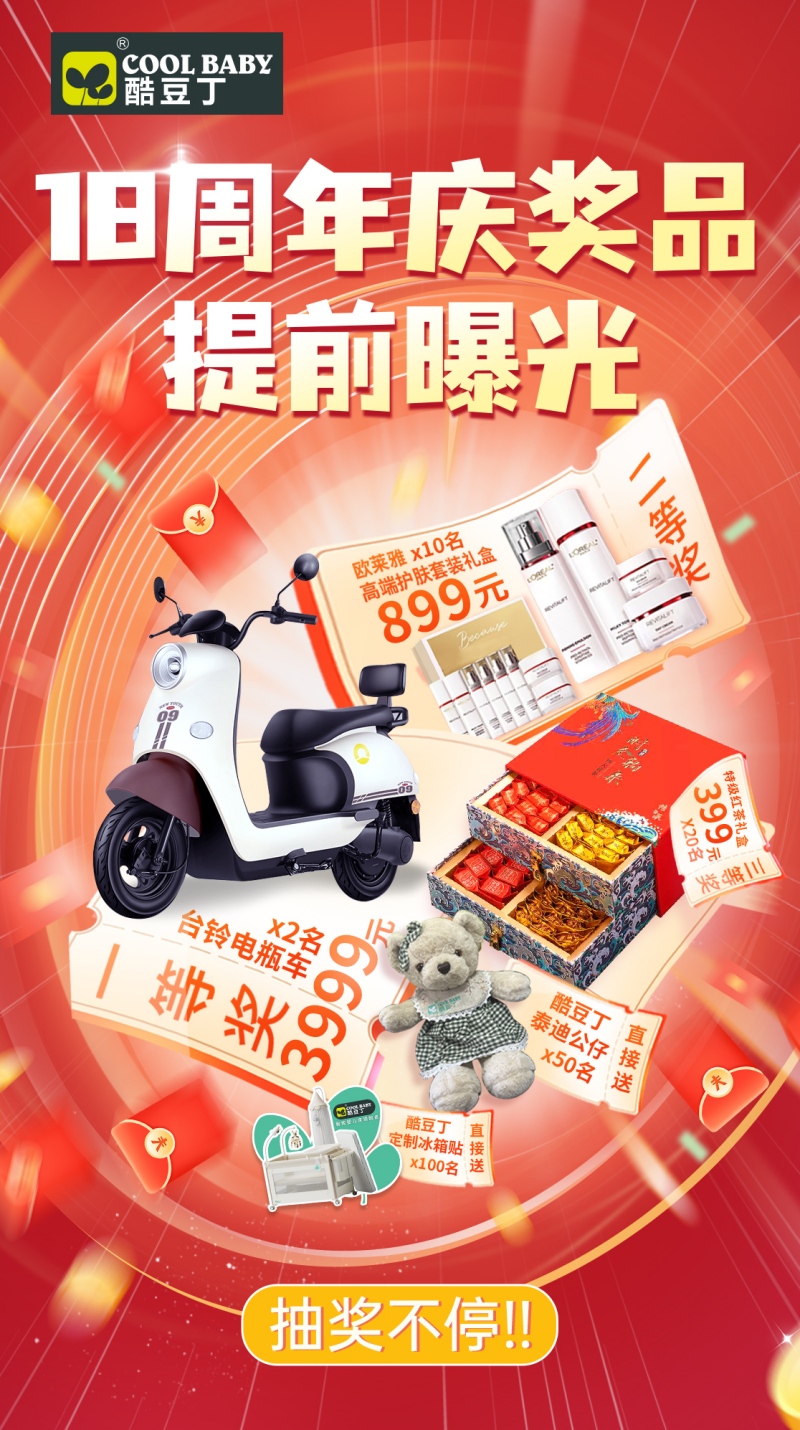 為了感謝酷豆丁員工一直以來的汗水與支持,本次周年慶典我們精心準備了豐厚的獎品,只待慶典當日與酷豆丁家人們共享喜悅!