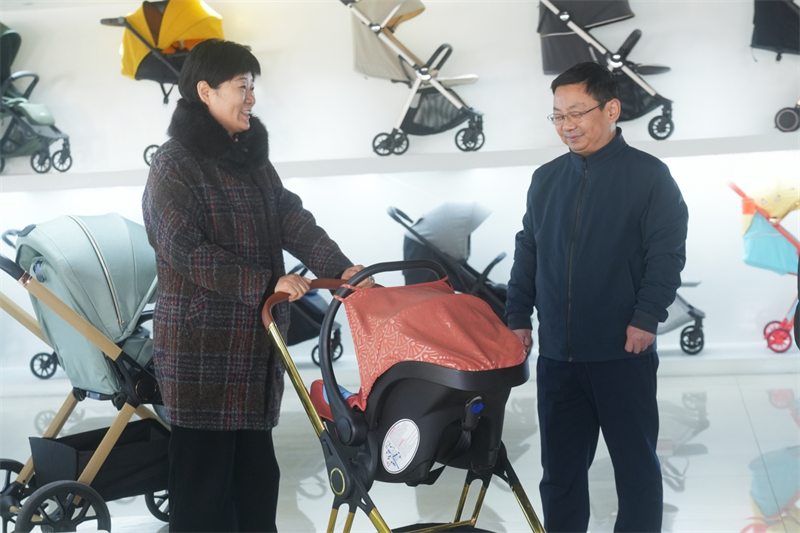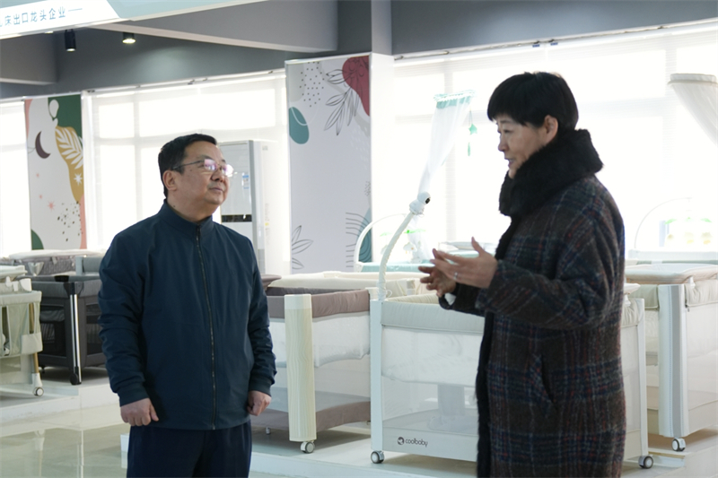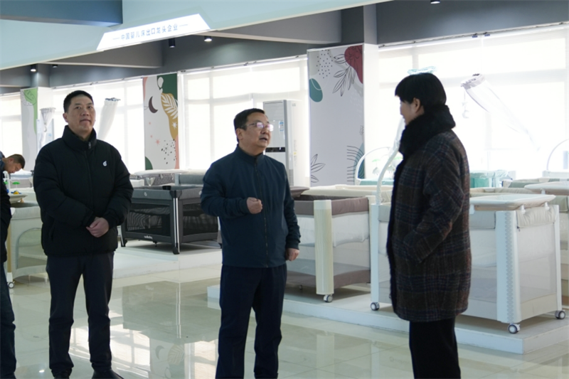 調(diào)研期間,李煜副市長(zhǎng)一行前往酷豆丁的產(chǎn)品樣品間,查看了各類(lèi)嬰童用品展示。在樣品間內(nèi),董事長(zhǎng)張迎年詳細(xì)介紹了公司產(chǎn)品的核心競(jìng)爭(zhēng)力、創(chuàng)新亮點(diǎn)以及市場(chǎng)定位等情況。李煜副市長(zhǎng)一行認(rèn)真聽(tīng)取介紹,并不時(shí)詢問(wèn)產(chǎn)品在國(guó)際市場(chǎng)的銷(xiāo)售情況、關(guān)稅政策對(duì)企業(yè)的影響以及企業(yè)目前面臨的困難和挑戰(zhàn)等,深入了解企業(yè)的發(fā)展現(xiàn)狀及未來(lái)規(guī)劃。