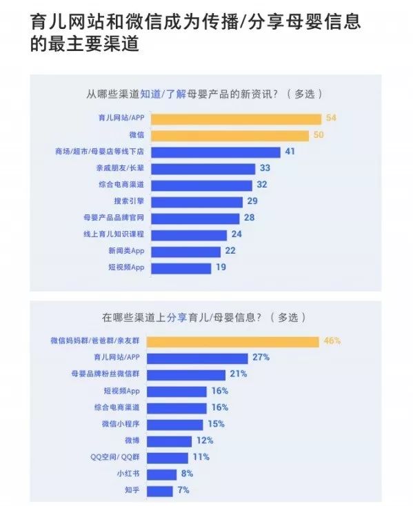 8、育兒網(wǎng)站和微信成為傳播分享母嬰信息的最主要渠道