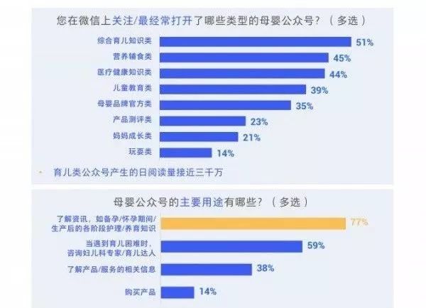 ·自媒體公眾號(hào):解決問(wèn)題的工具+種草。信息更有針對(duì)性,更專注某一具體垂直領(lǐng)域,如輔食類、健康成長(zhǎng)類、早教類等,主要用途是咨詢或搜集育兒信息、知識(shí)。