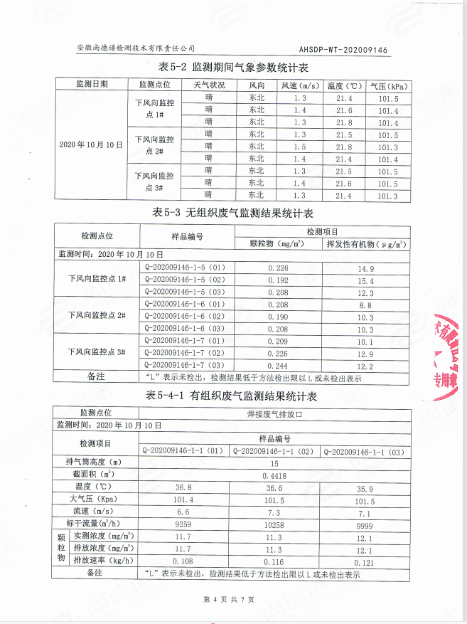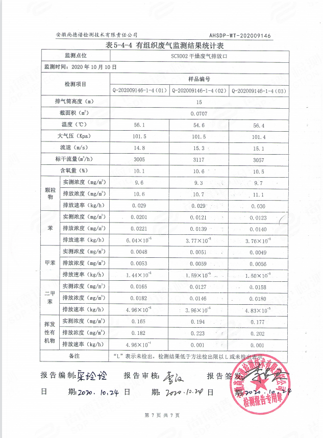 委托監(jiān)測單位為安徽尚德譜檢測技術(shù)有限責(zé)任公司,委托監(jiān)測內(nèi)容有組織廢氣、無組織廢氣、廢水等。根據(jù)監(jiān)測結(jié)果可知,公司?2020年度主要污染物排放均達(dá)到現(xiàn)正執(zhí)行的排放標(biāo)準(zhǔn),無超標(biāo)情況發(fā)生。