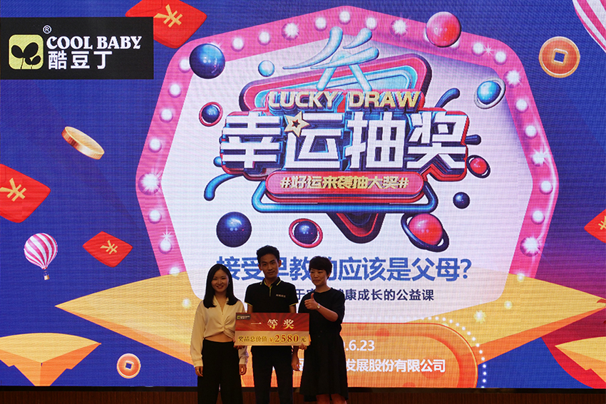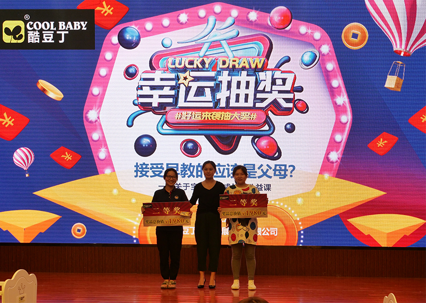 除了聆聽專業(yè)老師的授課,了解有關(guān)早教、育嬰、教育、家庭、職場相關(guān)知識點之外,主辦方還在簽到處準備了隨手禮供參與家長們免費領(lǐng)取,并設(shè)置了獎品豐富的現(xiàn)場抽獎環(huán)節(jié)。共有新一代環(huán)保床、嬰幼兒多功能活動中心套裝、便攜式游戲床在內(nèi)的豪華大獎頒發(fā)給了現(xiàn)場的幸運觀眾。