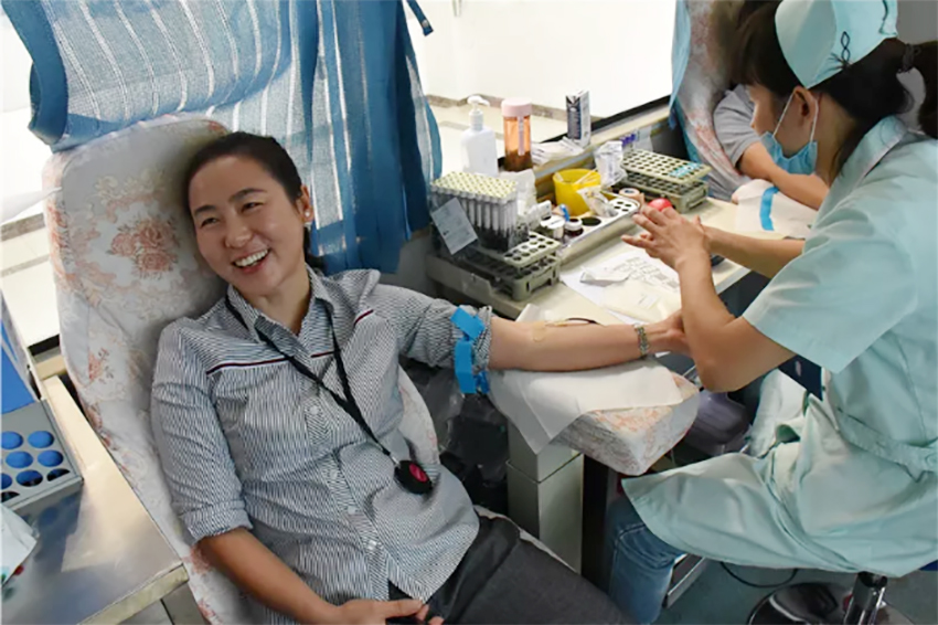 9點(diǎn)多大家陸續(xù)來到廣場旁邊的愛心獻(xiàn)血車,填寫獻(xiàn)血登記表、體檢、化驗(yàn)、采血……整個(gè)過程秩序井然,獻(xiàn)血車內(nèi)洋溢著溫情和感動。有過多次獻(xiàn)血經(jīng)歷的員工,大多顯得坦然從容,也有第一次來參加獻(xiàn)血的,多了幾分緊張和興奮。大家在相互鼓勵(lì)中完成無償獻(xiàn)血這一光榮之舉,一起體會奉獻(xiàn)愛心,收獲快樂。