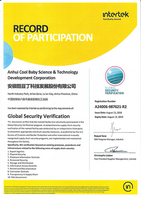 GSV美國(guó)反恐驗(yàn)廠通過證書