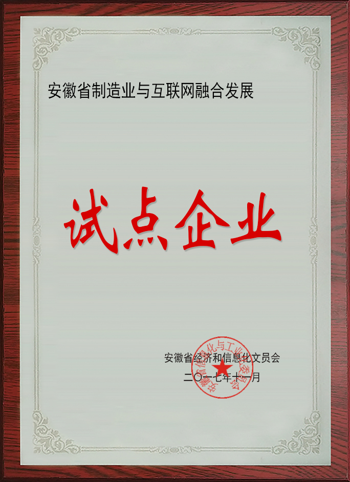 安徽省制造業(yè)與互聯(lián)網(wǎng)融合發(fā)展試點企業(yè)
