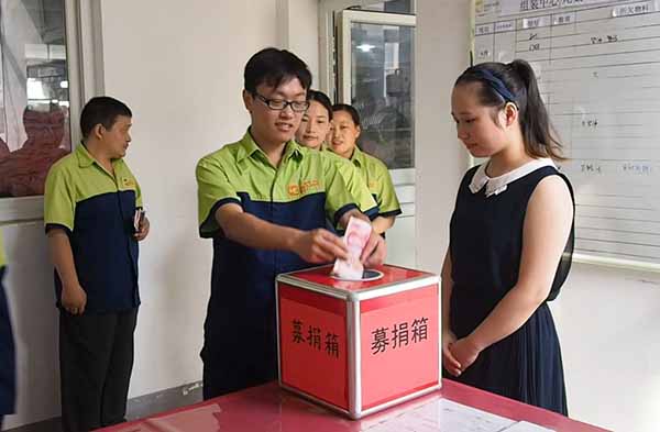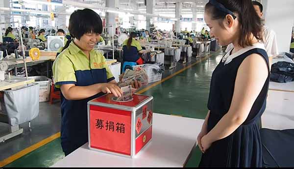 倡議書發(fā)出后,全廠廣大干部職工紛紛解囊,踴躍捐贈。公司老總率先捐出1000元,僅縫紉一個車間就捐款12154元,不到兩天時間,收到總捐款25766元,工會也從救助基金中拿出一萬元對趙成實施救助,讓趙成度過難關。此次善舉,讓趙成和全體員工充分體會到黨組織和公司這個大家庭的溫暖。
