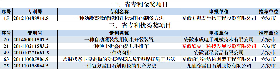 為鼓勵發(fā)明創(chuàng)造,促進專利技術實施和產(chǎn)業(yè)化,推動知識產(chǎn)權事業(yè)高質(zhì)量發(fā)展,第六屆安徽省專利獎共評選出安徽省專利金獎預獲獎項目19項,安徽省專利銀獎預獲獎項目30項,安徽省專利優(yōu)秀獎預獲獎項目80項。第六屆安徽省專利獎預獲獎項目名單出來啦??!厲害了我的酷豆丁。