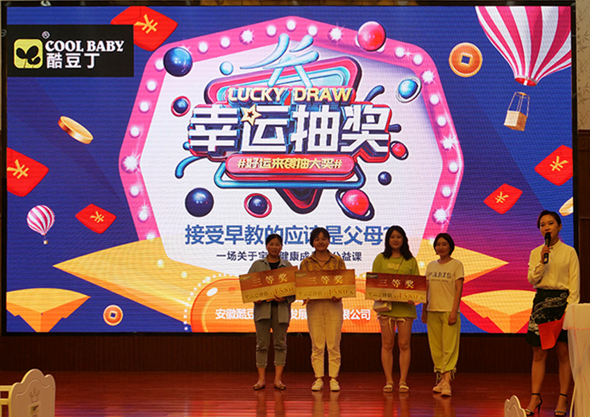 除了聆聽專業(yè)老師的授課,了解有關(guān)早教、育嬰、教育、家庭、職場相關(guān)知識點之外,主辦方還在簽到處準備了隨手禮供參與家長們免費領(lǐng)取,并設(shè)置了獎品豐富的現(xiàn)場抽獎環(huán)節(jié)。共有新一代環(huán)保床、嬰幼兒多功能活動中心套裝、便攜式游戲床在內(nèi)的豪華大獎頒發(fā)給了現(xiàn)場的幸運觀眾。