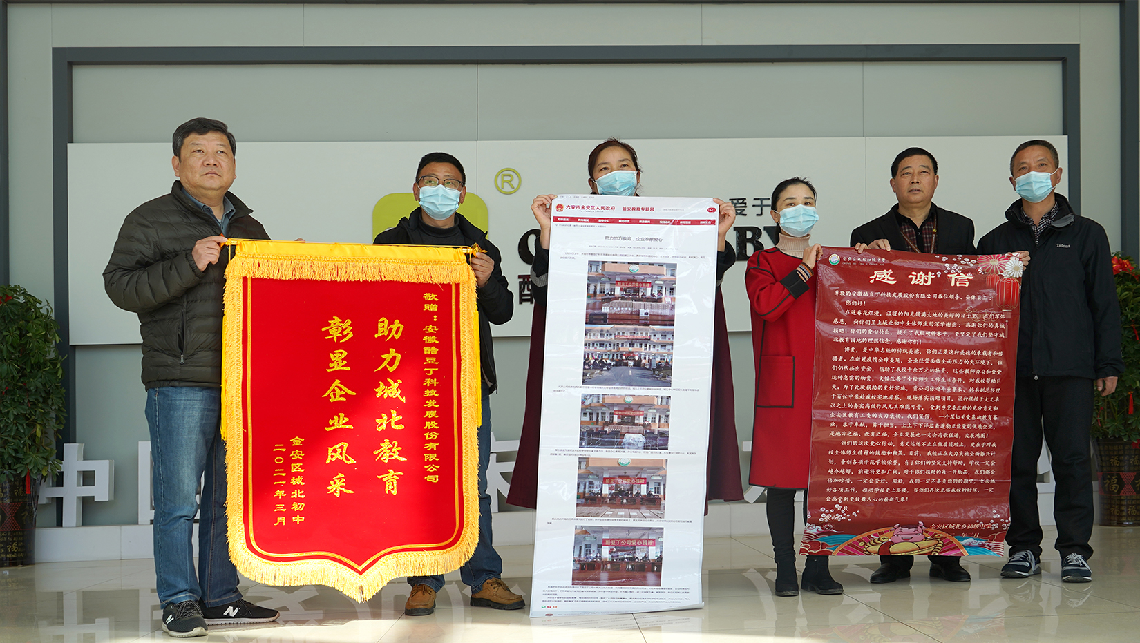 22日上午,城北初中校長王雪峰、副校長解繼川、工會(huì)主席王慶紅一行,攜錦旗和感謝信,蒞臨安徽酷豆丁科技發(fā)展股份有限公司(以下簡稱:我公司),感謝我公司對(duì)該校的無私捐贈(zèng)。公司副總經(jīng)理韓兵、黨建指導(dǎo)員宋欣國熱情迎接。